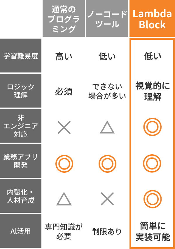 LambdaBlockは、AI×ノーコード(ブロック型)を活用し、プログラミングの専門知識がなくても業務アプリや自動化ツールを開発できる法人向けプラットフォームです。